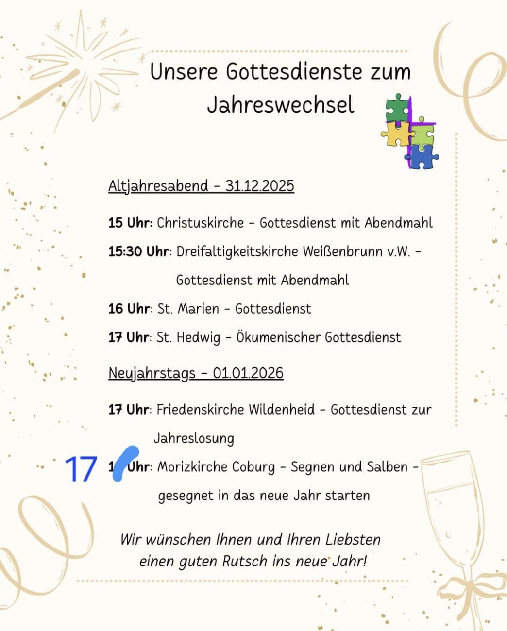 Anstehende Veranstaltungen/Events in der Pfarrei oder der evangelischen Region Rödental (Bitte klicken Sie auf das jeweilige Bild, damit es sich komplett zur Ansicht öffnet!) Kontakt Hauptamtliche/Pfarrbüro Pfarrei-Gottesdienste-Veranstaltungen Tageslosung Evangelische-Termine Minikalender Pfarrei Kirchenvorstände und Vertrauensleute Vermietung unserer Gemeinderäume Unsere Pfarrei-Gemeindebriefe Pfarrei musikalisch
